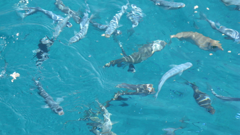 Knidos’u bir yana bırakıp yeniden tekne turuna dönecek olursak eğer, 1 saatlik Knidos antik şehir gezi molası da dahil olmak üzere verilen toplam 3 yüzme molası ile gayet zayıf bir tekne turu idi. Knidos’ta verilen bu bir saatlik molanın biz yaklaşık 45 dakikasını antik şehri gezmek için harcadık. Geriye kalan 15 dakikada da kendimizi hızlıca suya atıp serinledik. Knidos ve yemek molasını verdiğimiz Domuz İni dışında durduğumuz bir diğer koy ise Akvaryum koyu oldu. Hemen hemen her tatil yöresinin mutlaka bir akvaryum koyu olmasından dolayı çok özellikli bir durum teşkil etmemekle birlikte denizin dibinin pırıl pırıl olduğunu ve çakıl taşlarının mozaik gibi ışıldadığını söylemem lazım. balıkları beslemek de çok dinlendirici ve mutluluk verici bir şeydi.
