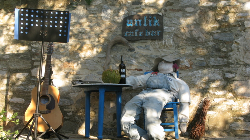 Bütün Eski Datça mahallesini gezip bitirdikten sonra  Antik Cafe-Bar’a oturduk. Gerçekten keyifli bir yer. Akşamları canlı müzik var. Burası da taş zeminli, ahşap masalı bir mekan. O gece Feride Sofugil ve Onur Karın çalıp söylediği şarkıları dinledik. Gitarı gören Adam onların sigara molasında aldı gitarı eline 4 şarkı çaldı arka arkaya. Böylece daha da keyiflendik. Siz de Feride ve Onur’la keyiflenmek için aşağıdaki videoyu izleyebilirsiniz 🙂