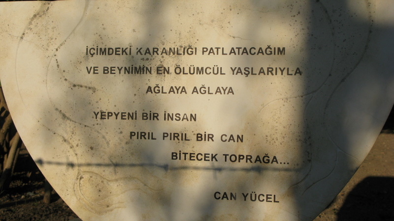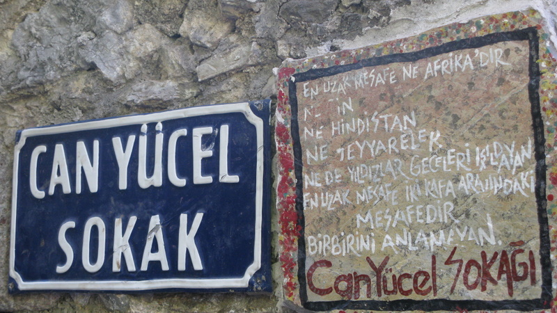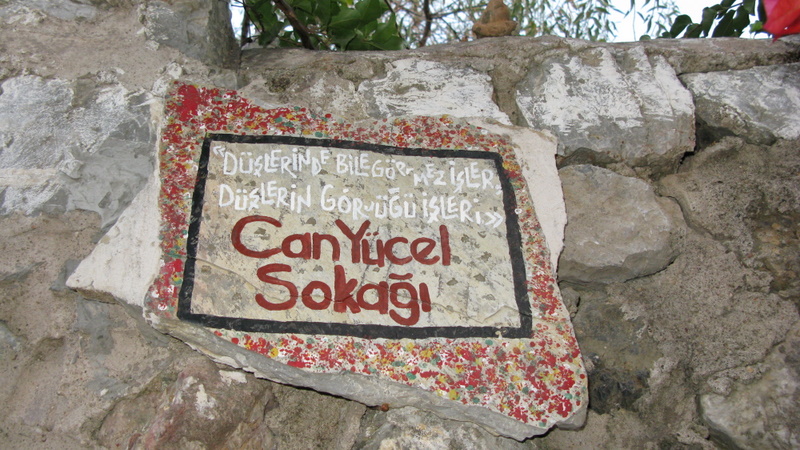Ömrünün büyük bölümünü burada geçiren Can Yücel’in evi meraklılarının odak noktası. Datça’ya gitmeden önce bölgeyle ilgili olarak okurken o kadar çokyerde aynı cümlelere aynı ifadelere rastladım ki. Aynılarını ben de yazsam mı yazmasam mı diye biraz çekimser kaldım. Ben çok fazla şiir meraklısı, şair takipçisi olmadığım ve facebookta dolananlar dışında Can Yücel şiiri de bilmediğim için bu yazıda ona özel bir önem atfetmek iki yüzlülük gibi geldi. Mahalledeki Can Evi şairin ölüm yıldönümü olan 12 Ağustos’ta ziyarete açılıyormuş. Evin olduğu sokağın ismi Can Yücel sokağı zaten. Dışarıdan bakınca mermer plaka üzerine işlenmiş  kısa bir şiirini görebiliyorsunuz.