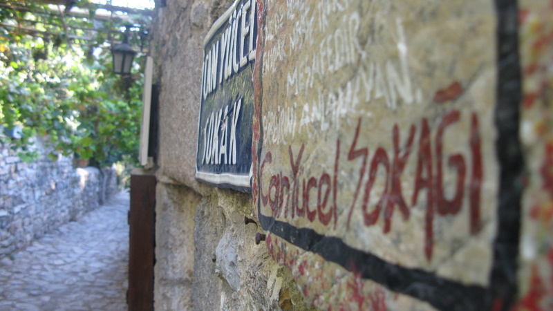 Ben konuyu işin uzmanlarına yani hukukçulara bırakarak Eski Datça’da karşılaştığımız bir başka hoşluğu size de göstermek istiyorum. Mahallenin sokaklarının isimleri mimari dokuyu bozmayacak şekilde taş plakalara yazılmış. Öyle de hoş olmuş ki yakaladıklarımın tümünün resmini çekmekten kendimi alamadım.