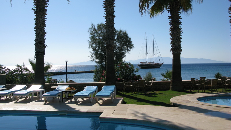 Üç günlük pansiyon hayatından sonra bu defa Datça’da üç yıldızlı Hotel Mare’de  kaldık. Otel gayet güzeldi. Odalar ter temiz, banyosu düzgün ve tüm odaları tam cephe ya da yan cephe bir şekilde denize bakıyordu.