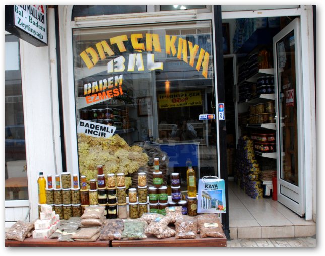 Yemekten kalktıktan sonra yine tavsiye üzerine, Zekeriya Sofrasının tam çaprazındaki dükkana girdik. Bu defa amaç bal, badem, incir almak. Baştan söyleyeyim ucuz bir yer değil. Nurlu badem alıp bademin bir kilosuna 40 tl verdiğimi duyunca annem çıldırdı. Yani bir nevi turistik tuzak da olabilir ama ben Kaya Bal’ın bademini de, balını da, pekmezini de, incirini de, ezmesini de, zeytinyağını da beğendim.