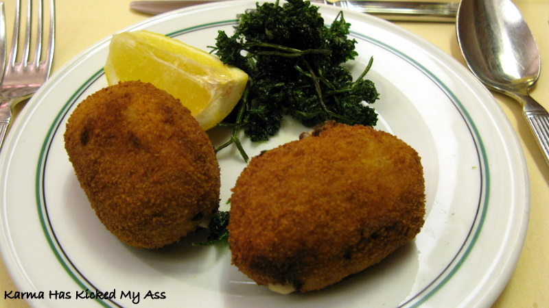 Fazla beklemeden ilk tabağım geliyor. Croquettes aux Crevettes. karides pane gibi düşünebileceğiniz bu tabak, Belçika mutfağının midye ile birlikte en ünlü spesiallerinden. İçerisindeki malzeme çok bol, dışındaki kaplamayı nerede ise hissetmiyor ve karidese doyuyorsunuz. Tabaktaki hoşluklardan biri de croquettelerin yanında sunulan maydanoz. Kıvırcık maydoanozlar çok kızgın yağa bir saniyeliğine batırılıp çıkarılmış ve gerçekten tahminlerinizin çok ötesinde nefis bir tada bürünmüş. Bayıldım.