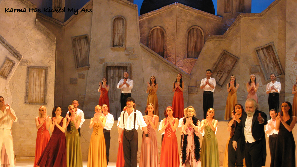 Kazancakis’in bu nefis romanının bale versiyonunu izlemeye giderken biraz kuşkuluydum. Bol bol sirtaki seyredeceğimizi biliyordum ancak kitabın felsefi boyutunun nasıl sahneye aktarılacağını çok kestirememiştim. Nitekim kafamdaki soru işaretleri sahnedeki yerlerini korudular. Eğlenceli, özellikle bizim gibi alkışlamayı, ritim tutmayı, hatta kalkıp halay çekmeyi seven Akdenizli milletler için güzel bir oyundu. Oyunun sonunda biraz da başrol oyuncularının seyirciyi gaza getirmesi sonucu dört kez bis yaptılar. Bana sorarsanız bu kadarı biraz çok kaçtı. Yine de rengarenk, keyifli bir gösteri sergilediler bizlere, o yüzden emeği geçen herkese çok teşekkürler.  Zorba da, madam Hortance da, Basil de çok başarılı idi ancak Zorba’nın balesi bir aşk hikayesinden öteye gidemedi.