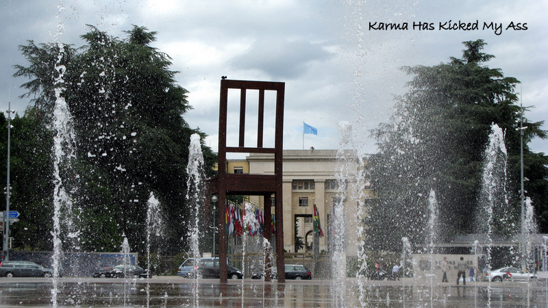 Çok vaktim yok, o yzddeparkın içerisindehızlı bir tur atıp, BM’ye doğru yürümeye devam ediyorum. BM’nin içini gezecek vaktim yok, ancak Ariana Müzesine giden yolda kırık sandalye ve bayraklı yolun resimlerini çekmeden geçmiyorum.