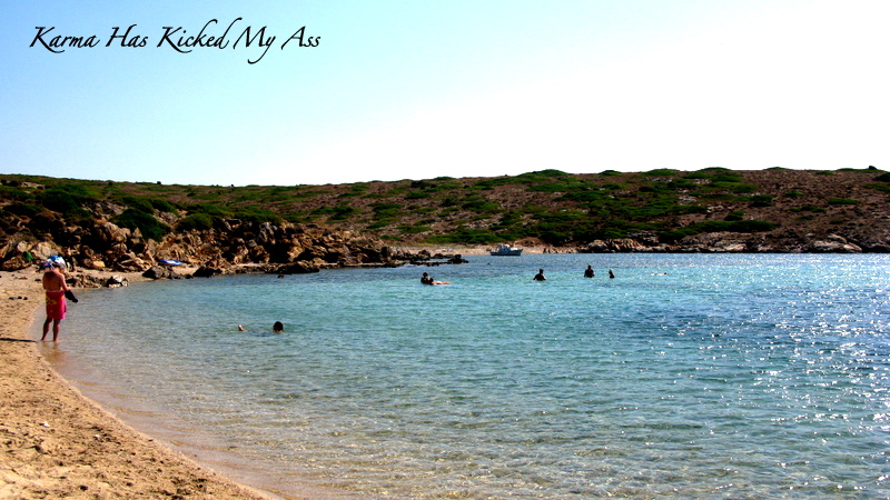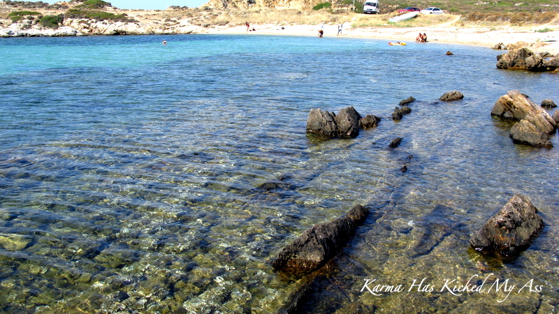 Genelde kuzey rüzgarlarının hakimiyetindeki adanın güney plajları denize girmek için ideal. Rüzgar karadan estiği için deniz çarşaf gibi dümdüz, cam gibi berrak ve limonata gibi serin. Biz pansiyona eşyaları bırakır bırakmaz önce akvaryum koyuna gidiyoruz. Yarım saatlik bu deniz molasında ürpererek girdiğimiz deniz bizi kendimize getiriyor 🙂 Suyun içerisinde derinlere doğru yürüyerek ilerlemeyi tercih edenler eziyet çekerken, atlayıp yüzenler buz gibi suyun zevkine daha erken varıyor.:)