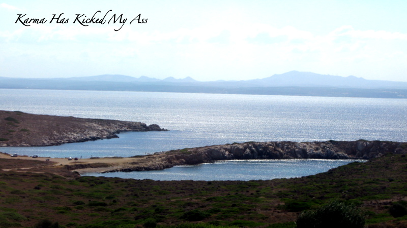 Akvaryum koyunu geçtikten sonra bu defa yolda resim çekmek için duruyoruz. Adanın bu tarafı hem kumsallara ev sahipliği yapıyor, hem de dik kayalıkların arasından pırıldayan masmavi sularla bize çok güzel pozlar veriyor.
