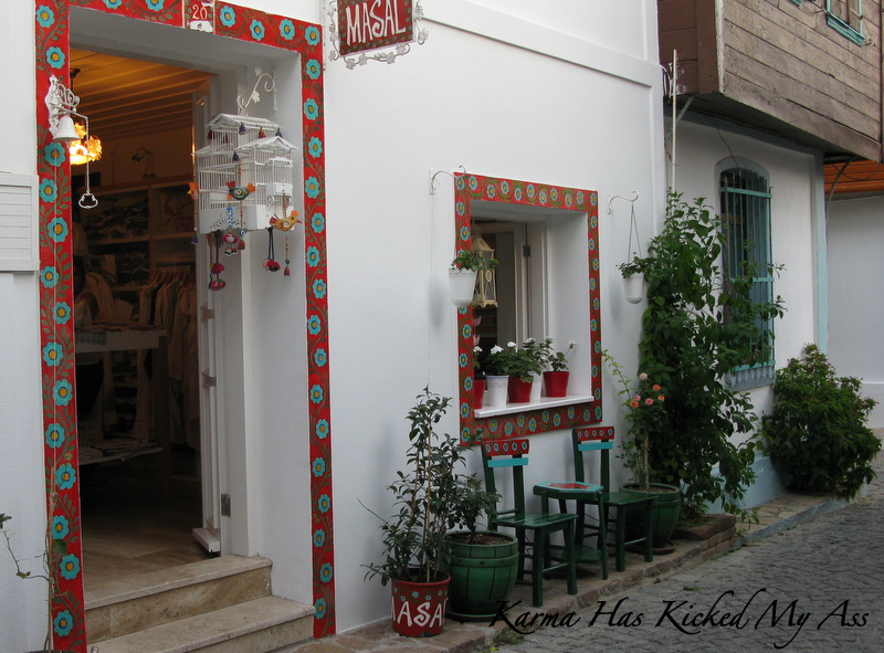 Sokaklar bakımlı, çiçeklerle bezeli, çer çöp yok, zaten Ada’da naylon poşet kullanmak yasak. Pansiyonlar, sanat galerileri, hediyelik eşya satan dükkanlar yan yana sıralanmış…