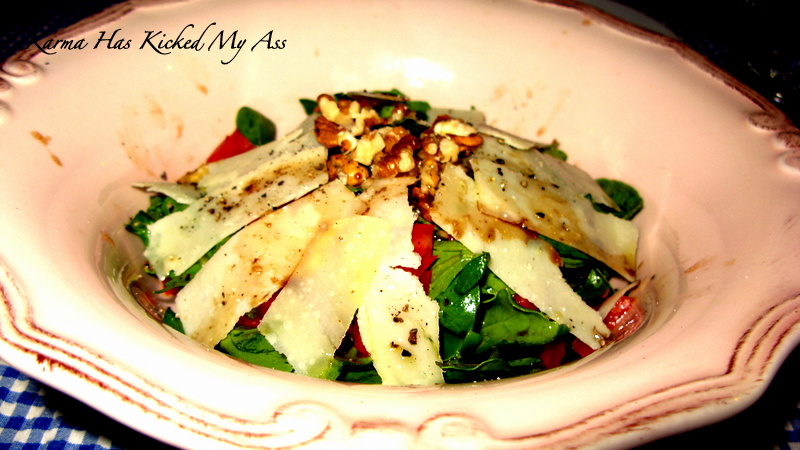 Bir güzel neniz ürünlü makarna, yanına da rokalı parmezanlı salata…