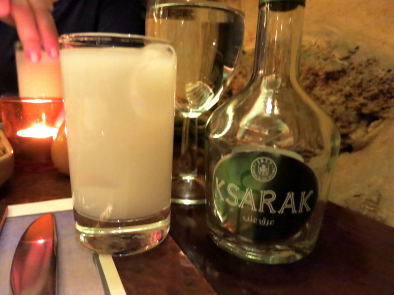 Nasıl dediğim kadar var mı sizce de? Garson geliyor. Bizim Türk oldugumuzu anlayınca başlıyor Türkçe konuşmaya. Ardından arak geliyor yanında kuruyemişle birlikte. Bir de minik lahmacunlar. Üzerine susam serpilmiş.