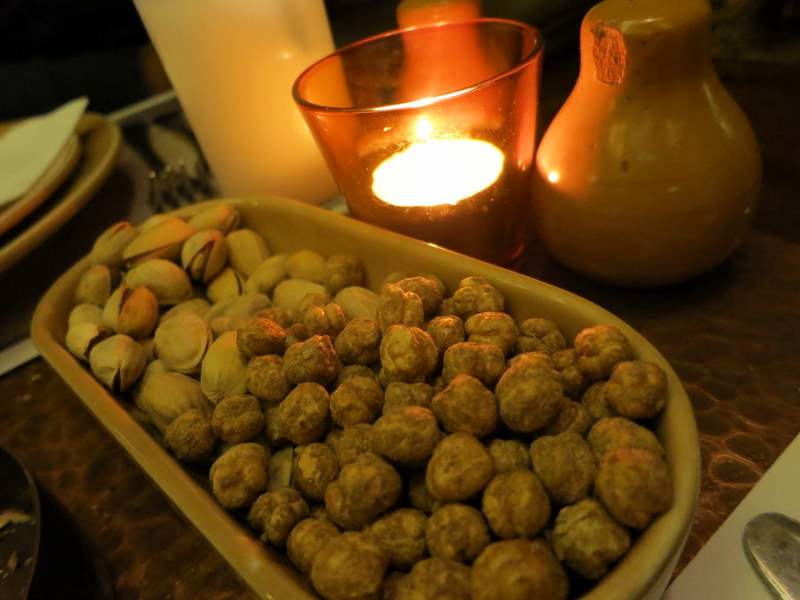 Arak ani rakı bardakları bizim eski rakı bardaklarından. Minik boy. Rakıyı ne boy istersinz diyorlar? 1/4 şişe diyoruz.17.5’luk şişe geliyor. Minik mi minik. Çok hoş. Gelen baharatlı leblebi ve fıstıkların da tadına diyecek yok.
