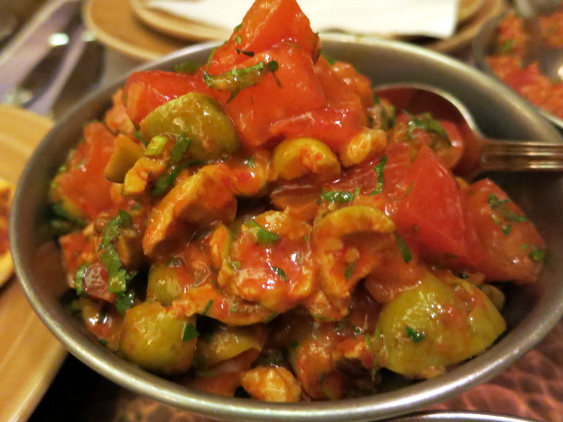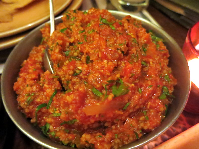 Ardından söylediğimiz meseler geliyor. Bu nefis bir muhammara. İçindek ceviz miktarı o kadar fazla ki yemeye doyamıyoruz.