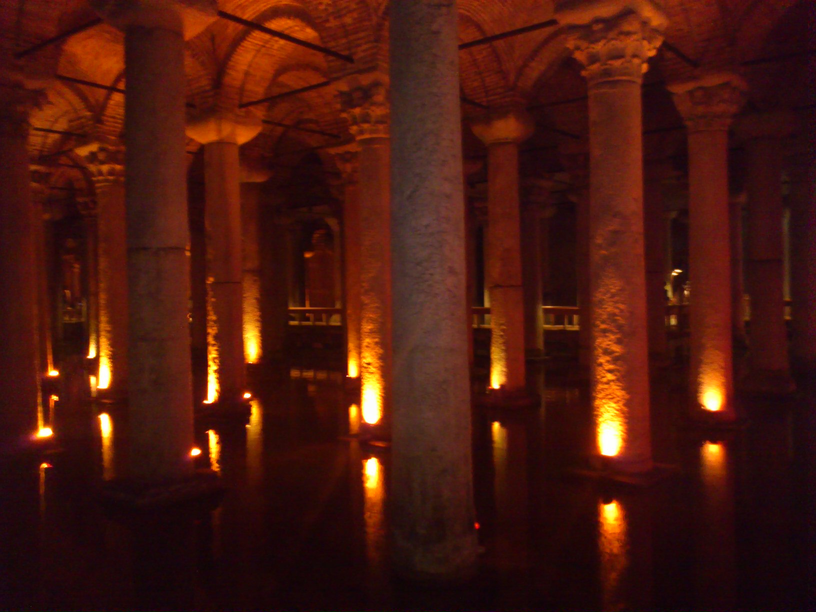 Burada karnımız doyunca bu defa hemen yanıbaşındaki Yerebatan Sarnıcına giriverdik. Burada Müze Kart geçmiyor. Giriş yabancılar için 10 TL bize 5 TL. Sanırım ayıp olmasın diye yazmamışlar tarife listesine. Merdivenlerden iniyoruz ve dünyanın en romantik su deposu karşımızda. Aynalı sazanlar yüzüyor suyun içinde. Bazıları o kadar büyümüş ki inanamıyoruz gözlerimize. Yine bir rivayete göre Bizans döneminde bu su deposunun üstünde yaşayan bir adam bir gün depoya bir kaç balık atmış, daha sonra büyüyüp çoğalan bu balıklarla da kendine ziyafetler çekmiş.