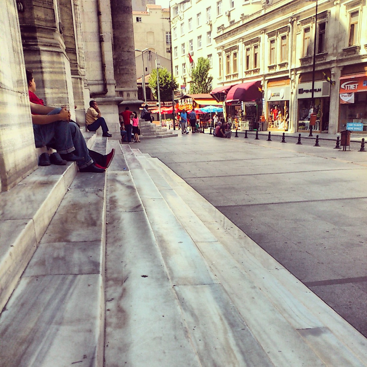Aşınmış, mermer merdivenlerine oturduk… Bir sigara tellendirdik….