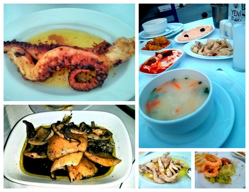 Akşam yemeği için Orfoz’u aradık önce. sadece 19.00- 21.00 arasında yerimiz var dediler. O yüzden vazgeçip başka bir restoran arayışına girdik. Bu geceyi iki bölüme ayırarak bir masayı birden fazla defa satma durumu bana çok sinir bozucu geliyor. Bu defa Gemibaşını aradık. Yerimiz var buyrun gelin dediler. Tekneden döner dönmez, sokaklar yeniden kalabalıklaşmadan saat 19.30 gibi restorana gittik. Oh ne güzel sakinlik, üstelik akşam serinliği de çökmüş. Dünya varmış dedirten bir durum anlayacağınız. Akşam yemeği için gidilebilecek gerçekten güzel bir restoran hatta öyle ki deniz ürününe doyuyorsunuz. Balık çorbasından, sübyeye, taramaya, ahtapot ve kalamara kadar herşeyine bayıldık. Bir küçük rakı ile birlikte 200 TL hesap ödedik. Ben yediğim yemeğin kalitesinden, servisten ve fiyat- kalite orantısından memnun kaldım.