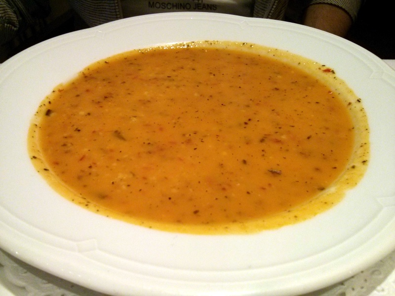 Önce çorbalardan başlıyoruz. Ben her şeyine bayıldığım Badem Çorbasıyla başlıyorum, Adam Kestaneli Terine Çorbası söylüyor. Öğreniyoruz ki Kestaneli Terine çornası aslında bizim bildiğimiz tarhana çorbasının kestanelisi.