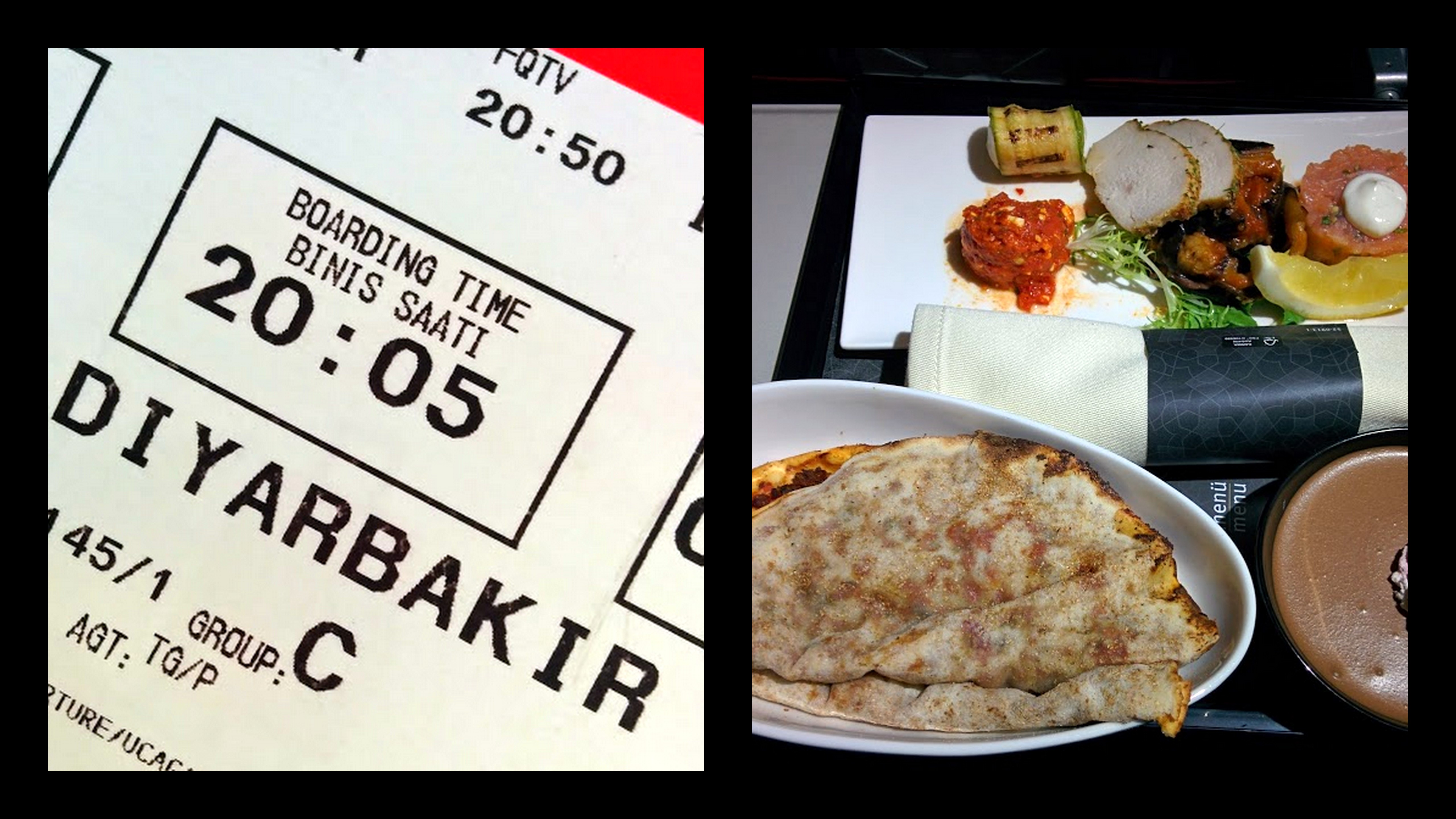 Cuma günü iş için Diyarbakırda bulunmak gerektiği için ben yola Perşembe’den çıktım. Koştura koştura geçen bir haftanın ardından havalimanında mil verip biletimi business classa yükseltince rahat rahat uyuyup biraz dinlenirim diye düşünerek koltuğa kuruldum. Yemek servisi başlayınca gelen yemek beni gülümsetti. Bizi lahmacunla karşılayan THY en güzel kebapların, et yemeklerinin diyarına gitttiğimizi bize bir kez daha hatırlattı.