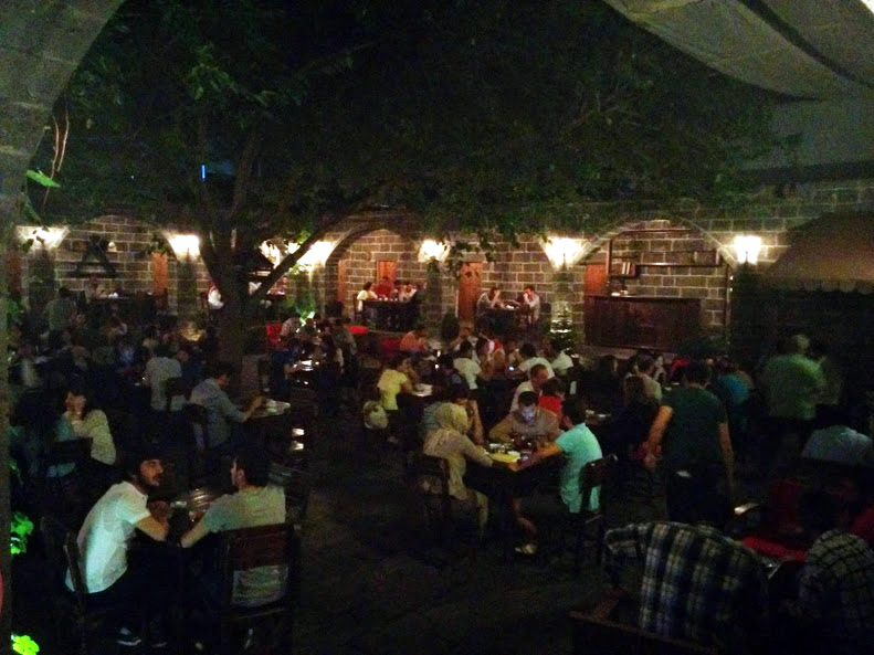 İlk gece bir gün önceden Diyarbakır’a inen ekip arkadaşlarımızla buluşup birer kadeh bir şey içtikten sonra otellere dağıldık. Ertesi gün akşam toplantıların bitmesiyle birlikte,  yemek için buluştuk. Erdebil Köşkü’ne doğru yola çıktık ve  15 dakikalık bir taksi yolculuğunun Dicle üzerindeki On Gözlü Köprü’nün karşısındaki bu tarihi restoranda yerimize yerleşmiştik bile. Hava karardığı için köprü ve nehrin aydınlık bir fotoğrafını çekemedim. Ama eminim akşam üstü hava tam kararmadan burada oturmak çok keyifli oluyordur. İçli köfte ve mezelerin yanında saç tava ile yutkuna yutkuna bütün masayı silip süpürdük.