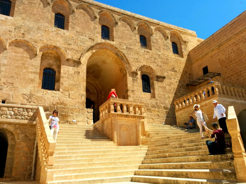 Buradan Deyrülzafaran Manastırına doğru yola çıktık. Manastır halen ibadete açık bir ibadethane. Süryani Ortodoks cemaati açısından en önemli merkezlerden biri. M.Ö. 4000 yılından bugüne dek ayakta kalmış bir yapı burası. İçerisi çiçek gibi. Bir kafe ziyaretçilere hizmet veriyor. Ziyaretçi sayısı çok olduğunda gruplar halinde sıra ile içeri alınıyorsunuz. İçeride bir müze mağazası var. Her türlü Manastırı korumak ve yaşatmak üzer kurulmuş bir de Dernek var. Süryaniler’in atalarının Asurlular ve Aramiler olduğu söyleniyor. Tarihte Hıristiyan yukarı Mezopotamya halkı olarak anılıyorlar. Binyıllardır burada yaşayan bir halk.