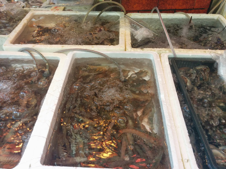Tapınaktan çıktıktan sonra deniz kıyısına inip Star Ferry’e binerek karşıya geçmek istiyorum. Denize doğru yokuş aşağı inerken Graham market’dan da geçmeyi ihmal etmiyorum. Sokak arasında kurulmuş bir pazar burası. Deniz ürünlerinin yanında az miktarda sebze de satılıyor.