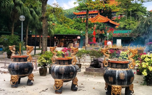 Büyük Buda heykelinin hemen biraz ilerisinde Po Lin Manastırı var. Fotoğrafta arkada görünen az katlı kırmızı kiremitli yapı Manastır binası.