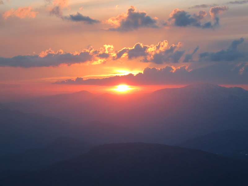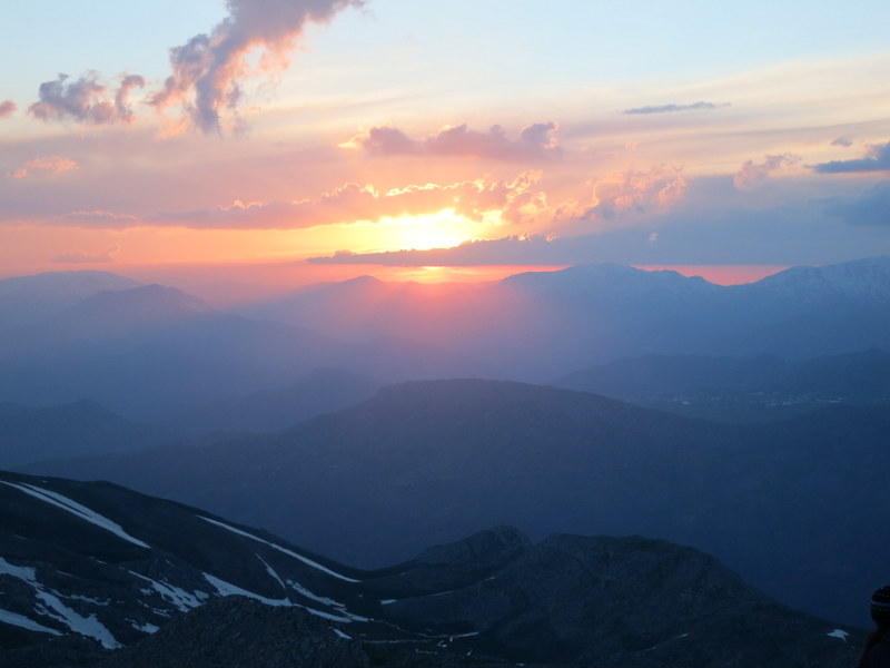 Biz güneşin batışının yaklaşması üzerine batı terasına geçip yerimizi aldık. Bu arada, hava zirvede gerçekten çok soğuk. Kışın zirveye çıkmayın, bahar aylarında ise yanınızdan montunuzu, berenizi, kaşkolunuzu ve eldivenlerinizi eksik etmeyin. Yukarı da titremeniz işten değil benden söylemesi. Güneş yavaş yavaş düşerken o kadar yorgunluğun üzerine ilaç gibi gelen şarabımızı yudumlamaya başladık, etrafımızdakilere de ikram ettik.