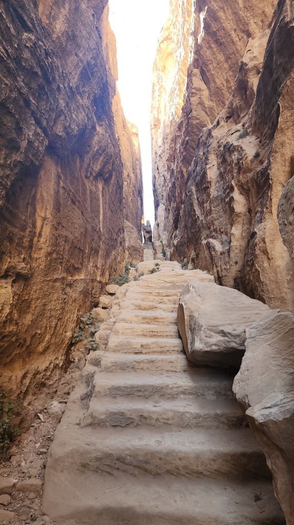 Yürümeye devam edince bence Petra’daki insan yapımı binalardan dahi daha etkileyici olan Dar Geçide, (Siq Geçidi / As – Siq) geliyoruz. Yürürken yol bitmesin diye geçiriyorum içimden. Enerjisi o kadar güzel ki sanki sadece yol ve siz varsınız, zaten kimse olmasa da olur. Gözlerinizi taşların desenlerinden, metrelerce yükselen duvarların yuvarlanan şekillerinden, görkeminden alamıyorsunuz. Doğa heykeltraş gibi çalışmış burada.