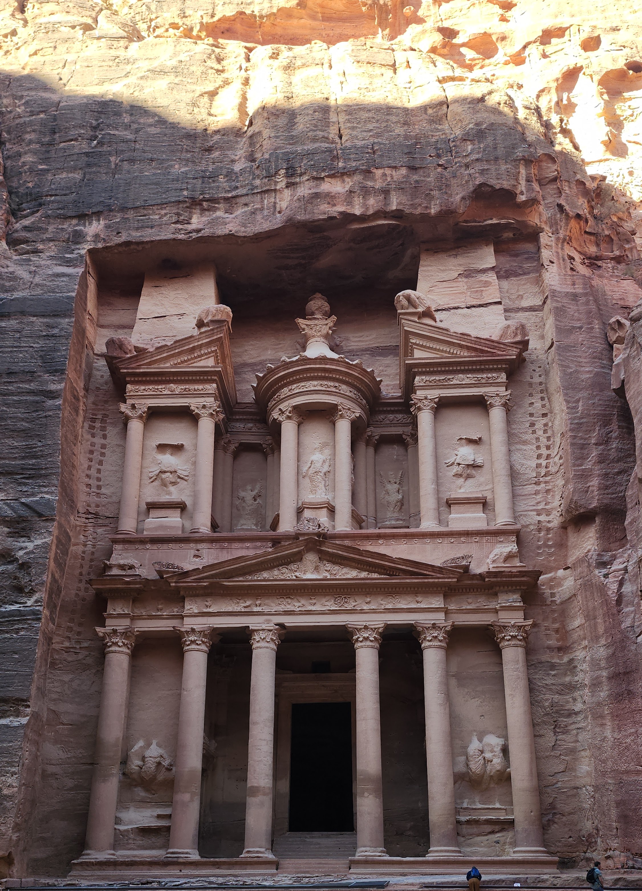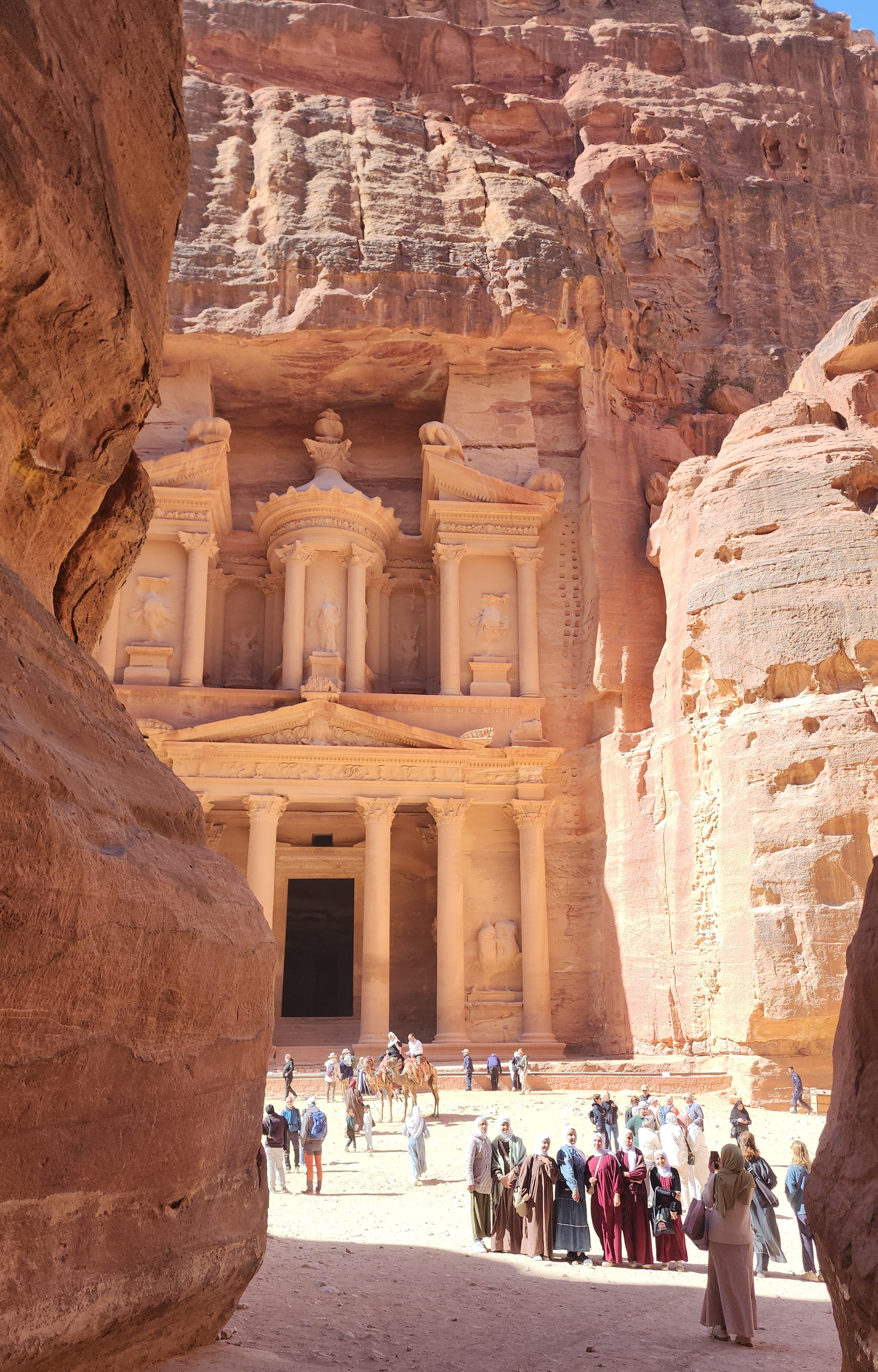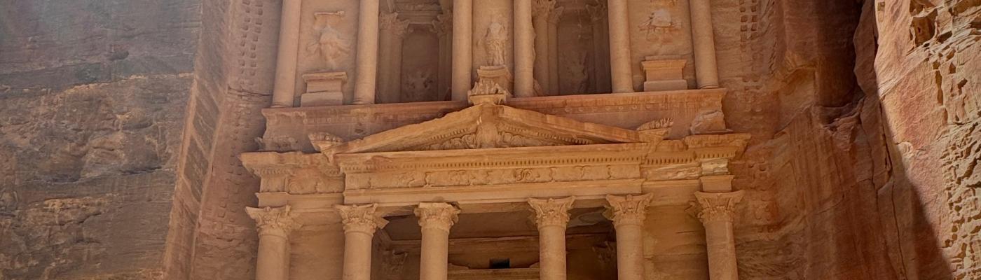 Dar Geçit sizi doğruca Hazine Binasına götürüyor. Petra kartpostallarında gördüğümüz manzara karşımıza çıkınca hem çok tanıdık geliyor hem de sanki gerçek üstü gibi. Muhtemelen pek çoğumuz bu binanın fotoğrafını gördüğümüz için geldik Petra’ya.