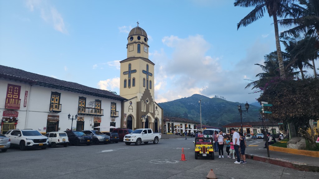Kahve ağaçları, çekirdekleri ve üretim süreci konusunda epeyce bilgilendikten sonra geceyi geçireceğimiz Salento’ya doğru yola devam ettik. Salento, Kolombiya’nın kahve ekseni olarak bilinen bölgesinde yer alan, tarihi ve kültürel dokusuyla çok fotojenik bir kasaba. 19. yüzyılda kahve ticaretinin büyüyüp geliştiği bir merkez haline gelmiş ve bugün koloniyal mimarisi ve rengarenk evleriyle turistik açıdan bir çekim noktası.