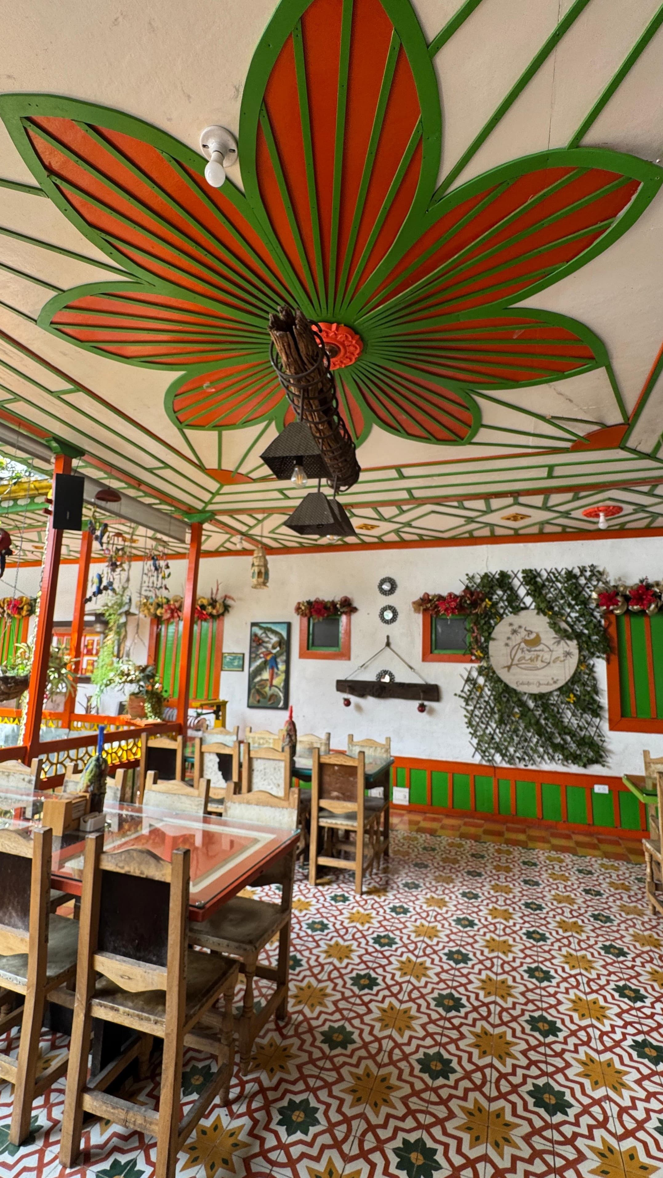 Restoranın içi de böyle. Renge doyduğumuz ve ruhumuzun da renklenmesini sağlayan bir ortamdayız.